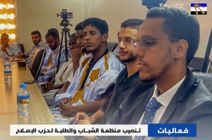 تم اليوم الأحد 22 نوفمبر 2025 تنصيب المكتب التنفيذي المنبثق عن المؤتمر الثالث لمنظمة الشباب والطلبة بحزب الإصلاح من طرف رئيس حزب الإصلاح الأستاذ محمد ولد طالبن بمقر الحزب المركزي بمقاطعة لكصر بحضور كل من : رئيس اللجنة التحضيرية للمؤتمر، أمين الإعلام ونائب رئيس لجنة الحكماء والمراقب العام والأمين الدائم للحزب وذلك في إطار تنصيب قيادات جديدة لمنظمة الشباب والطلبة كما نصت على ذلك مخرجات المؤتمر الذي انعقد في 15 المنصرم من الشهر الجاري الذي صوت على تجديد أعضاء هياكلها الثلاثة: مكتب وطني جديد من سبعة وخمسين عضوا ومكتب تنفيذي من خمسة وعشرين عضوا إضافة إلى خمسة عشر منسقا جهويا.